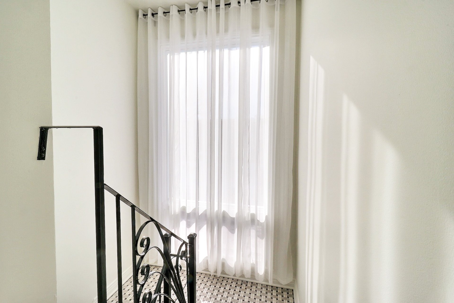 Inclus : Pôles, rideaux de la cage d'escalier blanc.