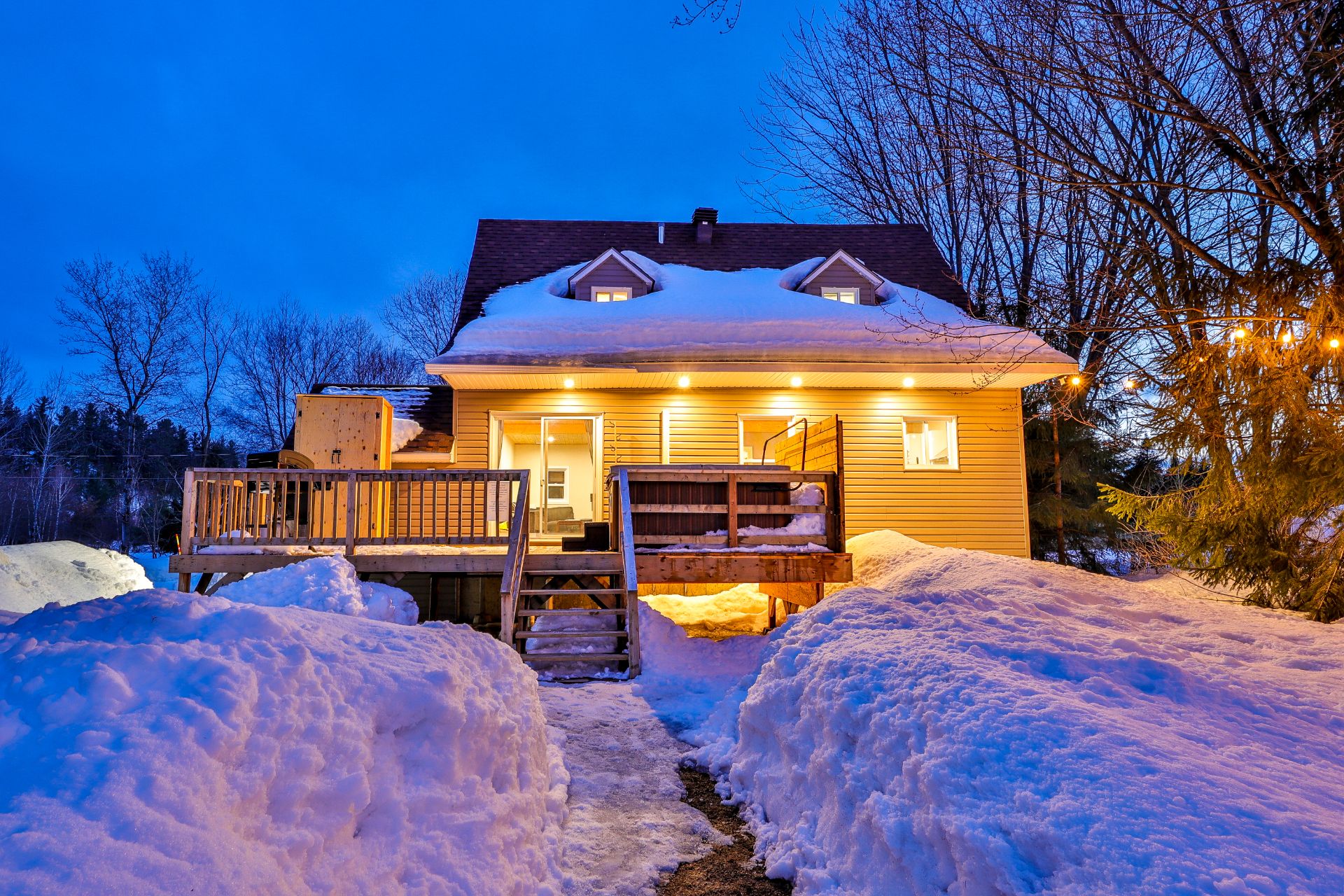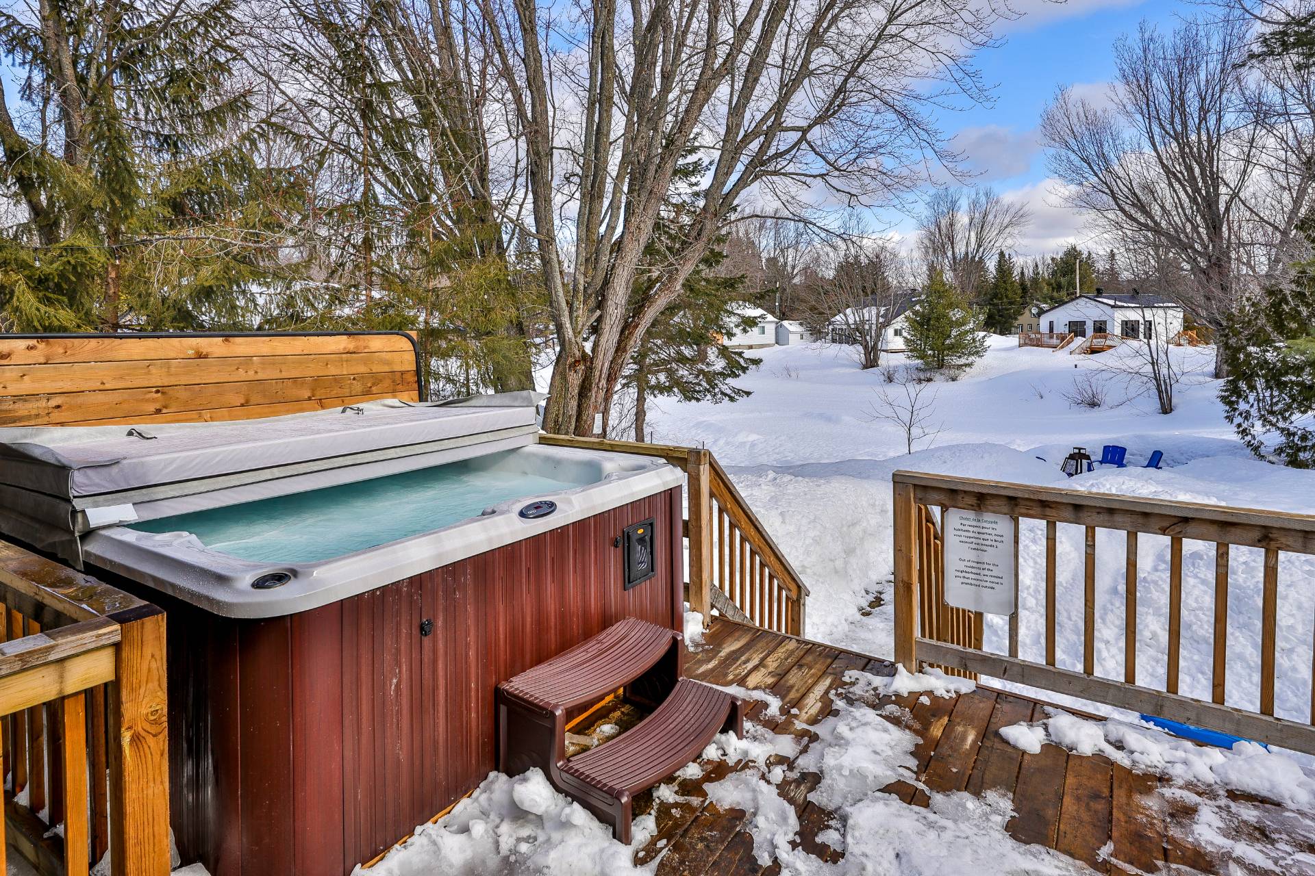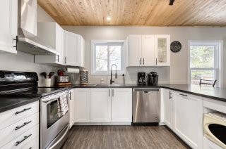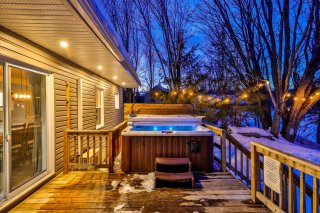 Inclus : Mobilier, spa, kayaks, vaisselle, literie, électroménagers, cabanon, bbq
